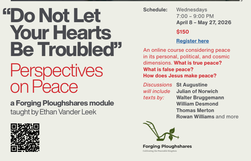 Dr. Ethan Vander Leek, a postulant in the Diocese of Wisconsin, is teaching an 8-week online course through Forging Ploughshares exploring the theology and philosophy of peace.